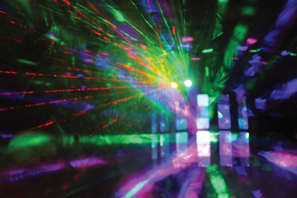 - Geometric red & green laser patterns