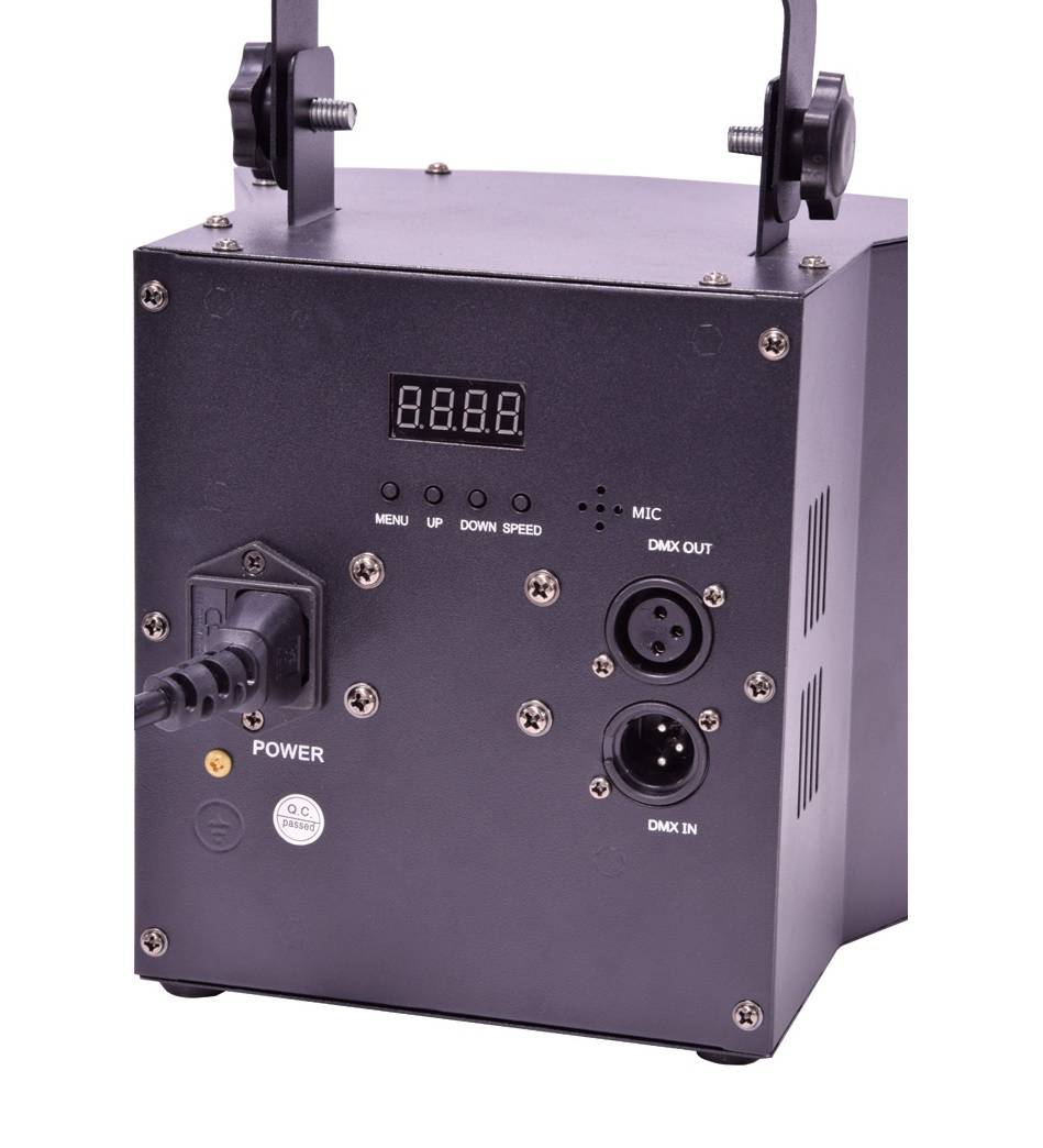 - Wide angle 9 colour LED derby effect