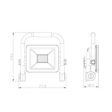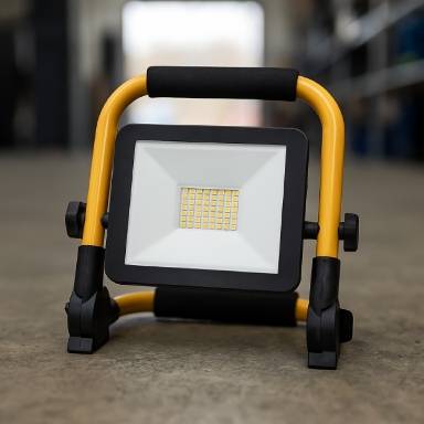 30W LED FLOODLIGHT with integrated 8Ah battery, rechargeable via USB-C cable. Adjustable lighting at 50% for longer autonomy. Adjustable metal stand for support. Designed to operate even in rainy conditions thanks to its IP65 protection rating.