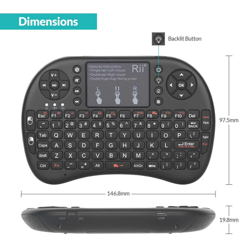 Rii Mini Keyboard Wireless 2.4GHz with Touchpad i8+