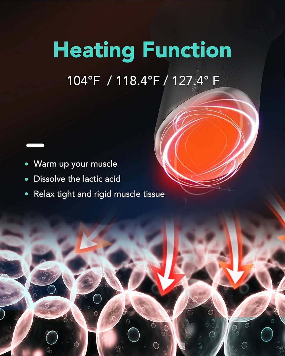 3-LEVEL HEATING Modes: Built-in heated option on the bottom, heat works to warm up your muscle; 3-LEVEL constant temperature heat function effectively reduces muscle tension, relax stiff joints, and calm muscle spasms.