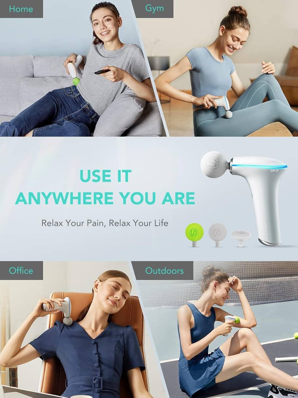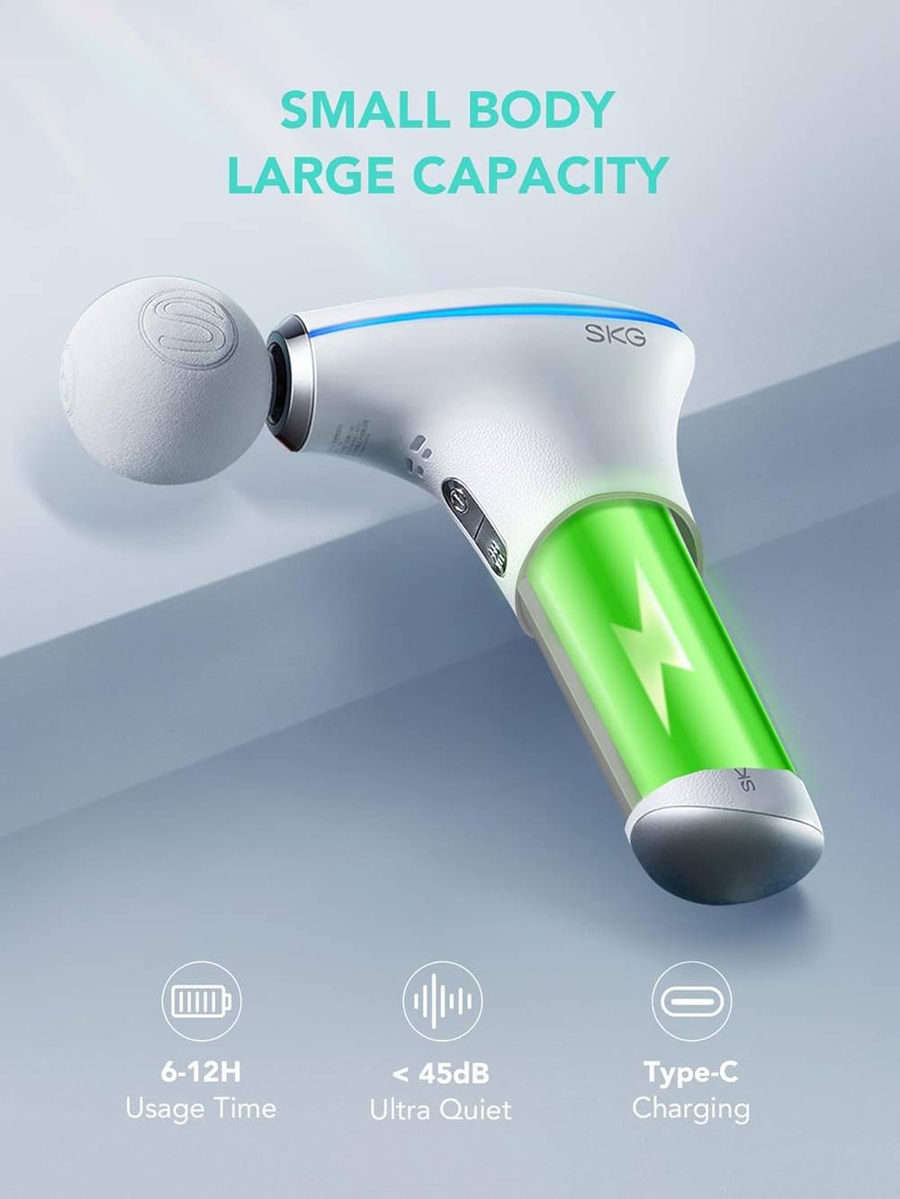 - POCKET-SIZED MASSAGE GUN: SKG F5 Mini Massage Gun aims to give you the highest quality muscle treatment with unparalleled portability; Designed for maximum ergonomic comfort and unparalleled portability; quick relief and relaxation that fits conveniently in your carry-on or backpack