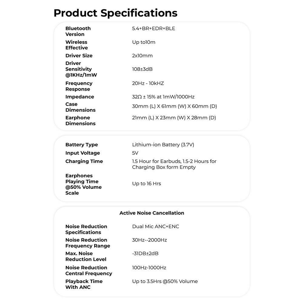Microphones: Equipped with 4x MEMS microphones for high-quality call pickup.