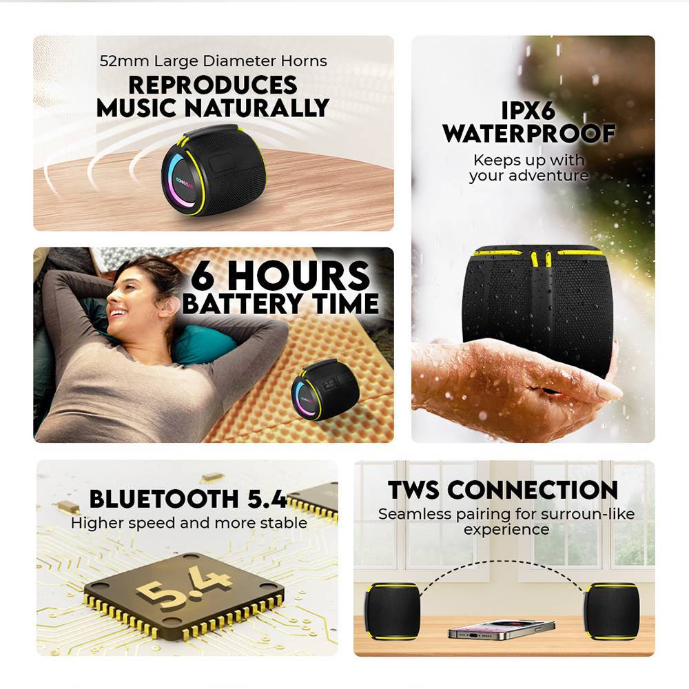 - IPX5 Waterproof: Resistant to splashes and light rain.