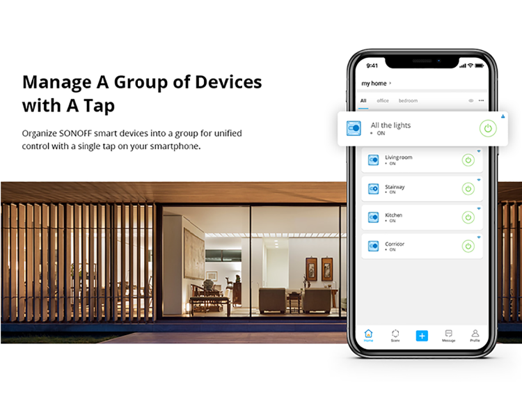 - Scene : Turn on/off a gang of devices with one tap