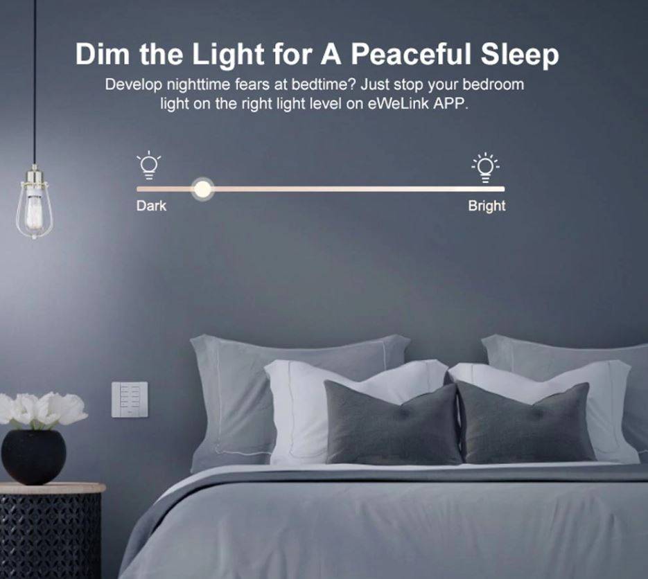 Due to popular demand, SONOFF eventually releases a new D1 smart dimmer switch. It excellently improves the lighting system in your home with different brightness levels. Turn on/off, brighten and dim the incandescent light bulbs and dimmable LED lights through the RM433 remote controller, eWeLink APP, Alexa or Google Home. The newly added sunrise and sunset mode are available in smart scene to activate your light when sunsets and inactivate it when sunrises. Amazingly, timing schedule and brightness setting can be enabled simultaneously in smart scene. It means that you can schedule the bed-room light to automatically turn on at 40% brightness at 7:00 AM and turn off at 100% brightness at 7:00 PM. There is a base for the RM433 remote controller which is used to be directly replaced your light switch and installed into the 86 type mounting box, everything looks perfect