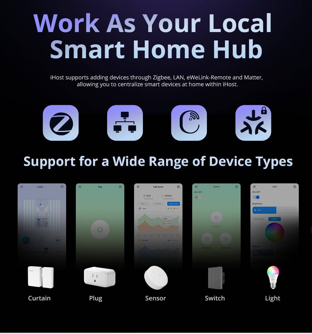 - Local Control Center : The iHost Smart Home Hub serves as your local control center, elevating your home automation experience to be faster, more reliable, and more secure