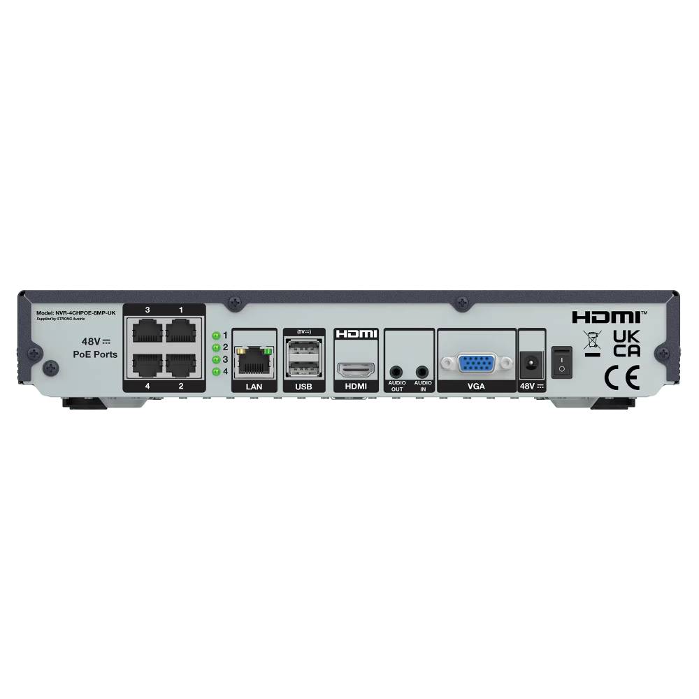 Strong Security NVR 4 Channel 4K H.265+ PoE ONVIF Supported NVR-4CHPOE-8MP-UK
