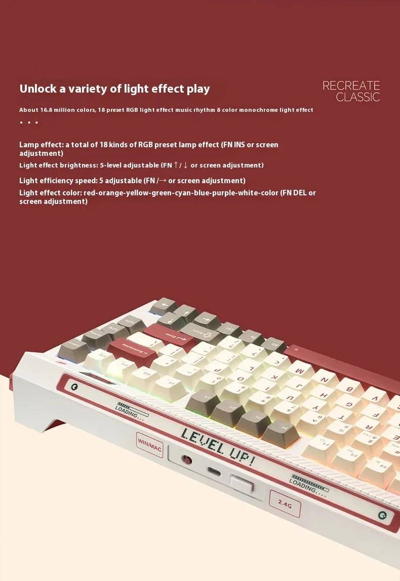 - Retro Typewriter Theme Aesthetic Keyboard: This wireless creamy keyboard embraces a classic retro gaming theme, featuring high-quality PBT keycaps with MDA profile and full-key thermal sublimation.The design pays homage to the golden era of gaming in the 80s and 90s.