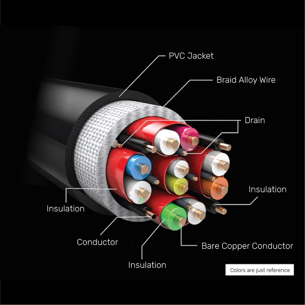 - 24K Gold-plated aluminium connector, 100% copper wire.