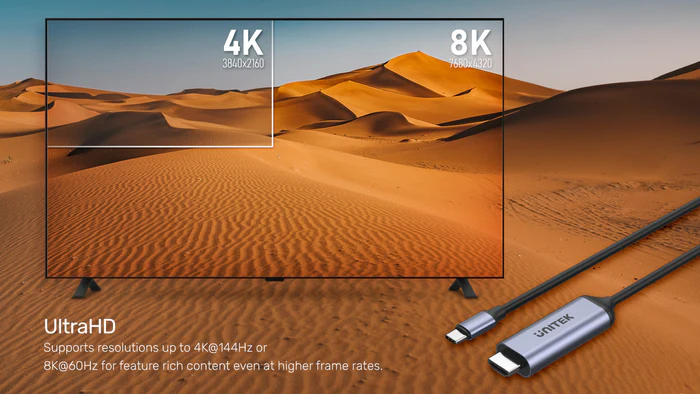 he UNITEK USB-C to HDMI 8K Cable provides a seamless connection between USB-C devices like MacBooks, iPads, or laptops and HDMI-enabled monitors or TVs. Ideal for gaming and high-definition video streaming, it delivers exceptional performance and clarity.