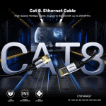 The double-shielded Cat 8 Ethernet cable supports bandwidth up to 2000MHz and data transmission speeds up to 40Gbps, enabling users to stream HD videos, surf the internet, and play online games at lightning speed without delays.