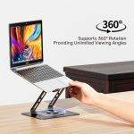 - This Adjustable Laptop Stand features a 360-degree swivel and tilt design, providing infinite viewing angles while securely holding your laptop in place