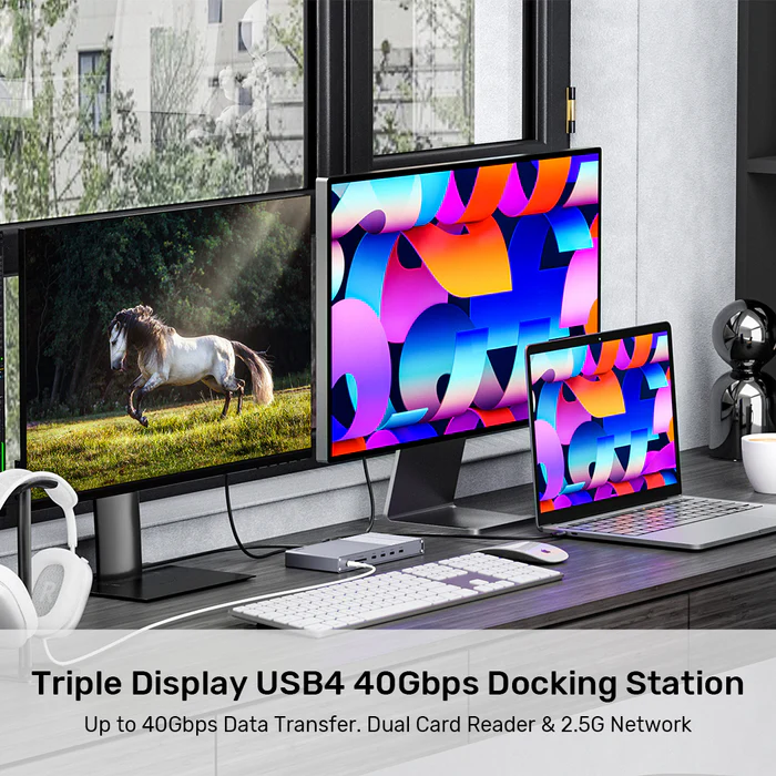 Unitek USB-C Hub Docking Station USB4 40Gbps Triple 4K Display & 2.5G Lan with 120W PSU D1117A