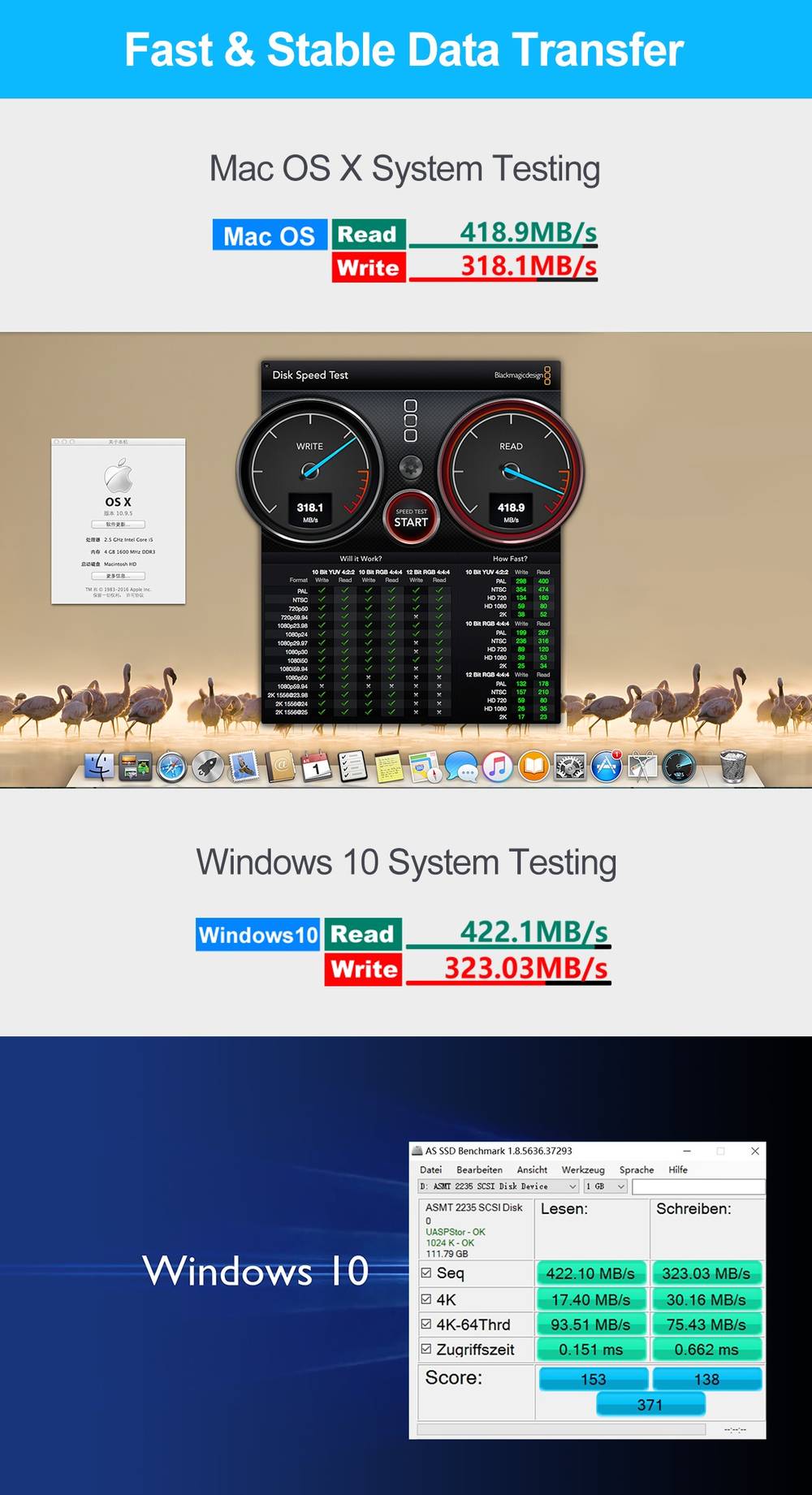 • Support UASP and TRIM, maximise the data transfer speed and lifespan of SSD.