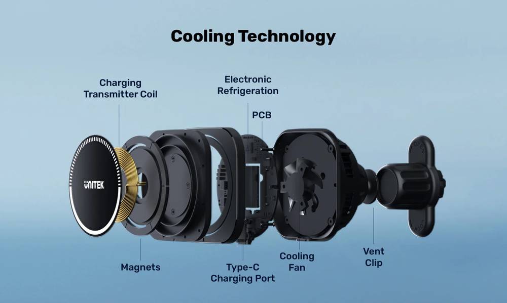 - Better Cooling, Better Phone Performance: UNITEK R&D laboratory has upgraded this MagSafe car vent by upgrading the phone-cooling fan and also the heatdissipating technology to protect your phone from overheating.