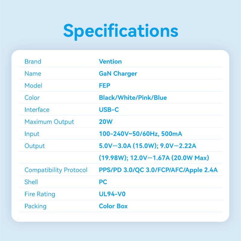 Vention Charger Wall GaN 20W 1xUSBC UK-Plug Mini White FEPW0-UK