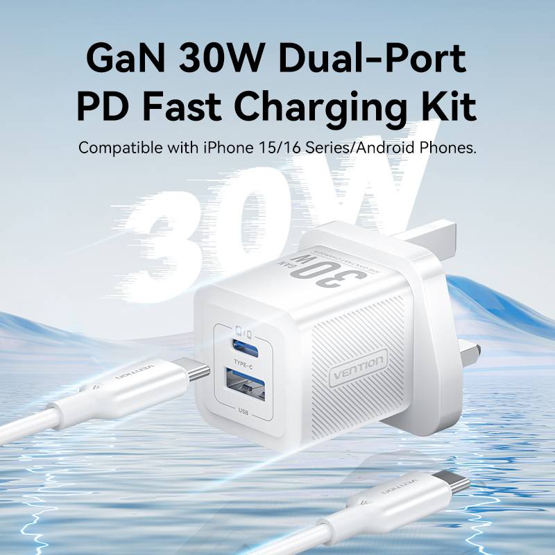 Vention Charger Wall GaN 30W 1xA 1xC+USBC Cable White TZ-FEQW0-UK-01
