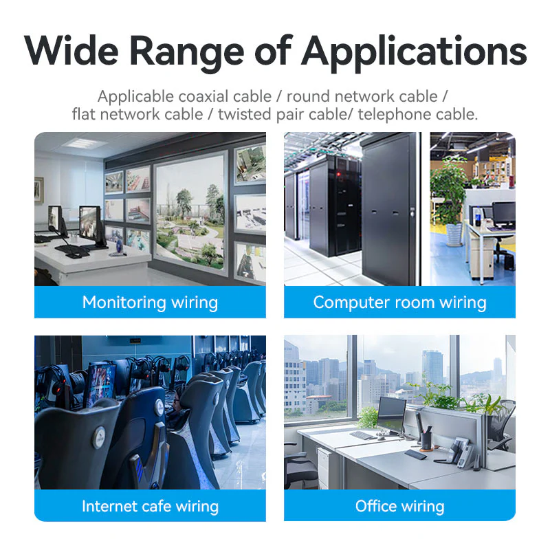 - Cable Stripping Ports: Multiple stripping ports are available, including those for coaxial cables, round network cables, and flat network cables. This flexibility ensures compatibility with various cable types, making the Vention Cable Stripper suitable for numerous applications.