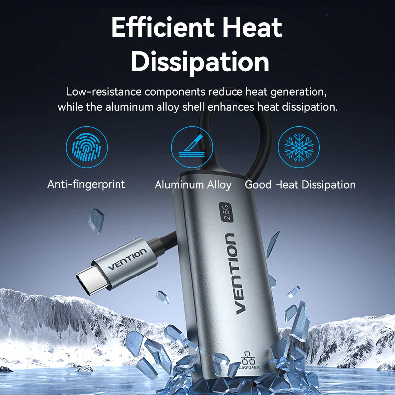 The Vention CFTHB USB-C to 2.5G Ethernet Adapter is a high-tier networking solution designed for users who demand extreme bandwidth beyond the traditional Gigabit limit. By leveraging the 2.5Gbps standard, this adapter is perfect for resellers targeting power users, creative professionals, and gamers who need to eliminate network bottlenecks. Encased in a premium aluminum alloy shell for optimal thermal management, it provides a stable, ultra-high-speed wired connection for USB-C laptops, tablets, and desktops. It is the ideal accessory for optimizing NAS transfers, 4K/8K video editing workflows, and lag-free competitive gaming.