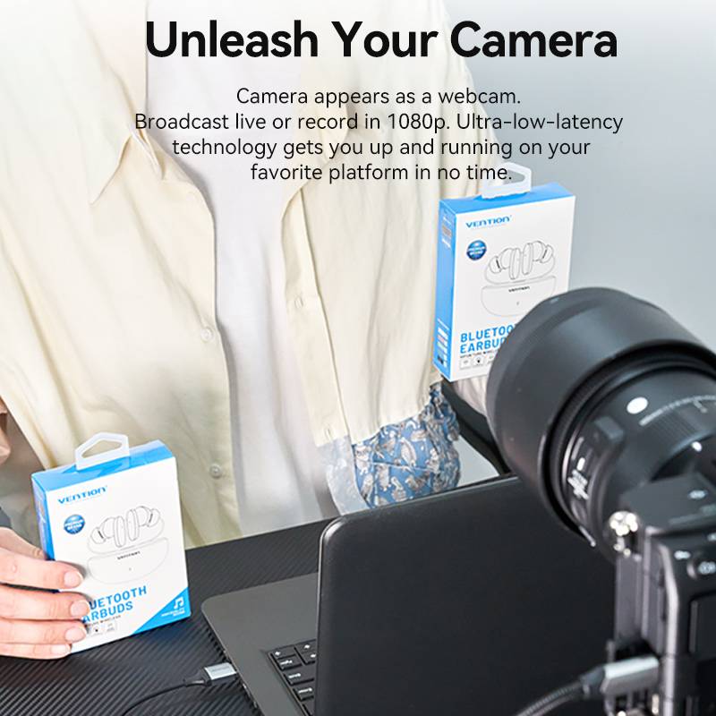 Transform your camera into a high-definition webcam with ease. Whether you're broadcasting live or recording for future content, the capture card ensures your camera appears as an HD webcam, delivering full 1080p quality. The ultra-low-latency technology gets you up and running on your favorite platforms in no time, providing a professional edge with minimal setup effort.