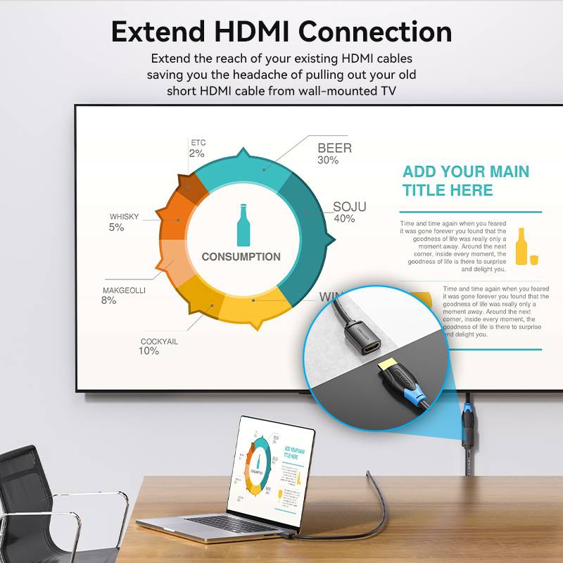 - Ease of Use: Enjoy the plug-and-play functionality. The HDMI extension cable is easy to set up and use, accommodating both tech-savvy users and beginners. The detailed design enhances usability and prevents signal loss, ensuring optimal performance.