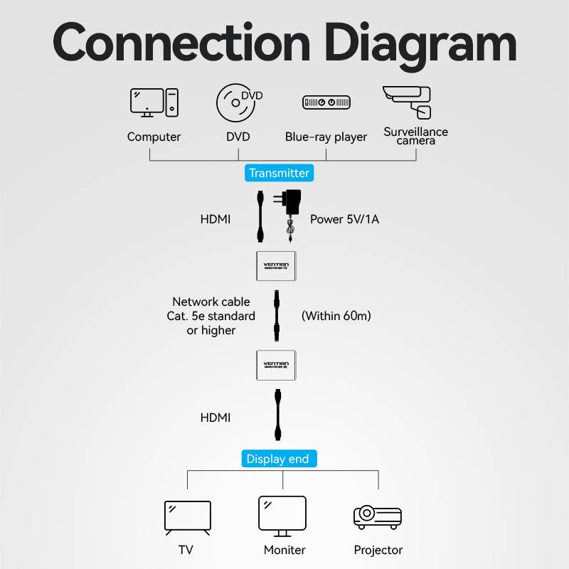 - Wide Range of Applications: The Vention HDMI Network Cable Extender is versatile and suitable for an array of settings, from home theaters to professional broadcasting setups, making it a reliable choice for diverse multimedia applications.