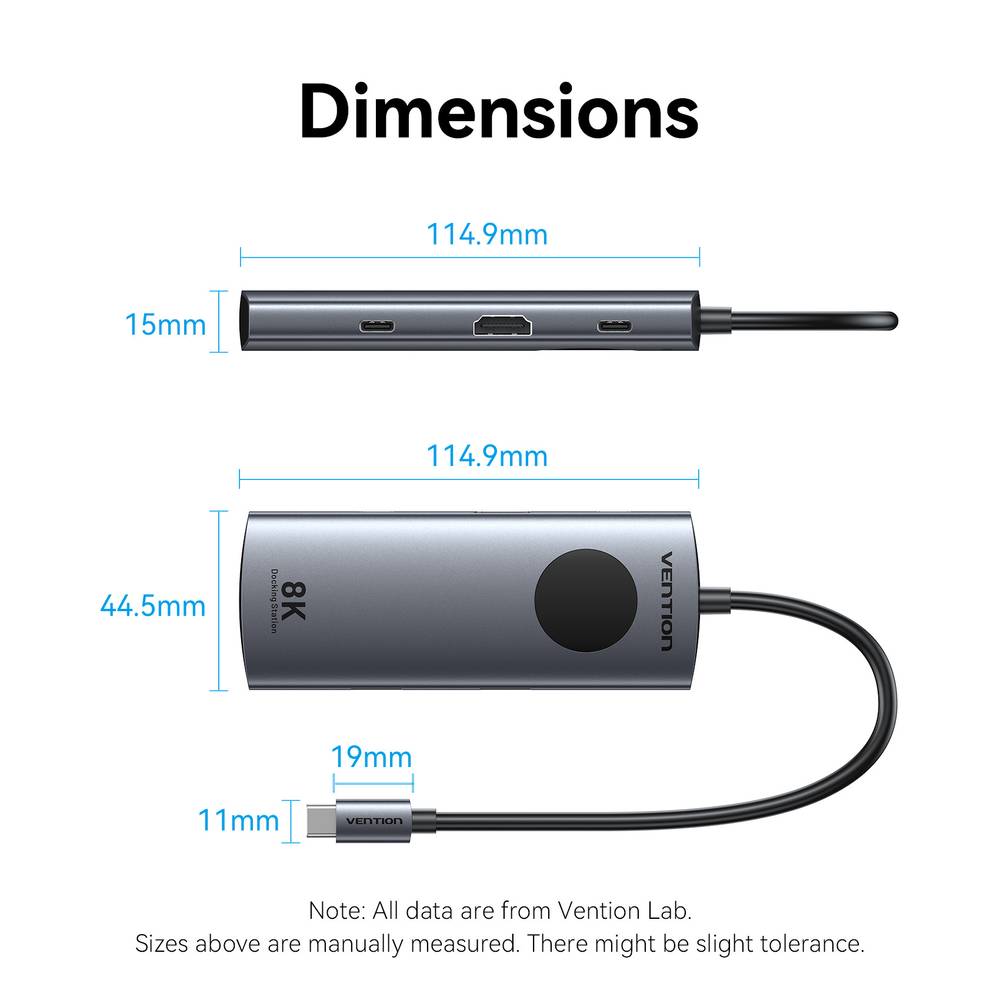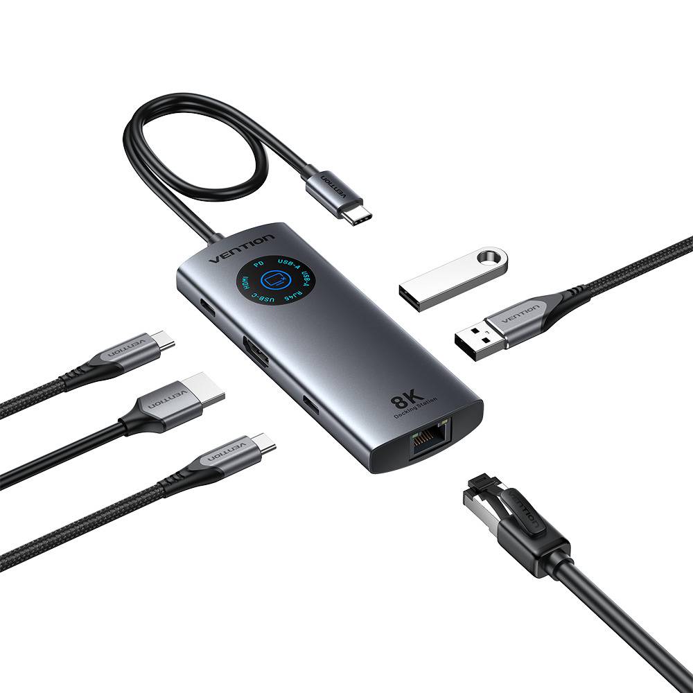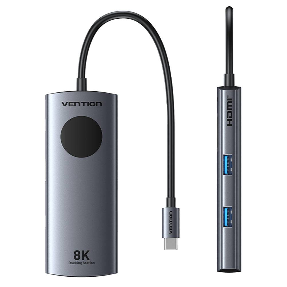 Vention HUB USB-C 3.2 Gen1/8K-HDMI/Gb/PD + LED Display & Switch TQZHB