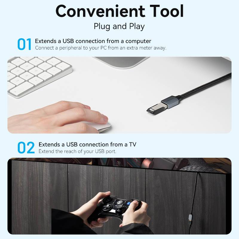 The Vention USB-A 3.0 Extension Cable is a premium utility solution designed to bridge the gap between your devices and your workstation. Whether you need to reach a rear computer port or extend a peripheral’s range, this cable maintains full USB 3.0 SuperSpeed performance without data dropouts. Wrapped in a high-density nylon braid with sleek aluminium alloy shells, it is built to withstand the rigors of daily use while resisting interference. This 2-meter extension is perfect for resellers targeting the professional home office and gaming markets where durability and high-speed data integrity are non-negotiable.