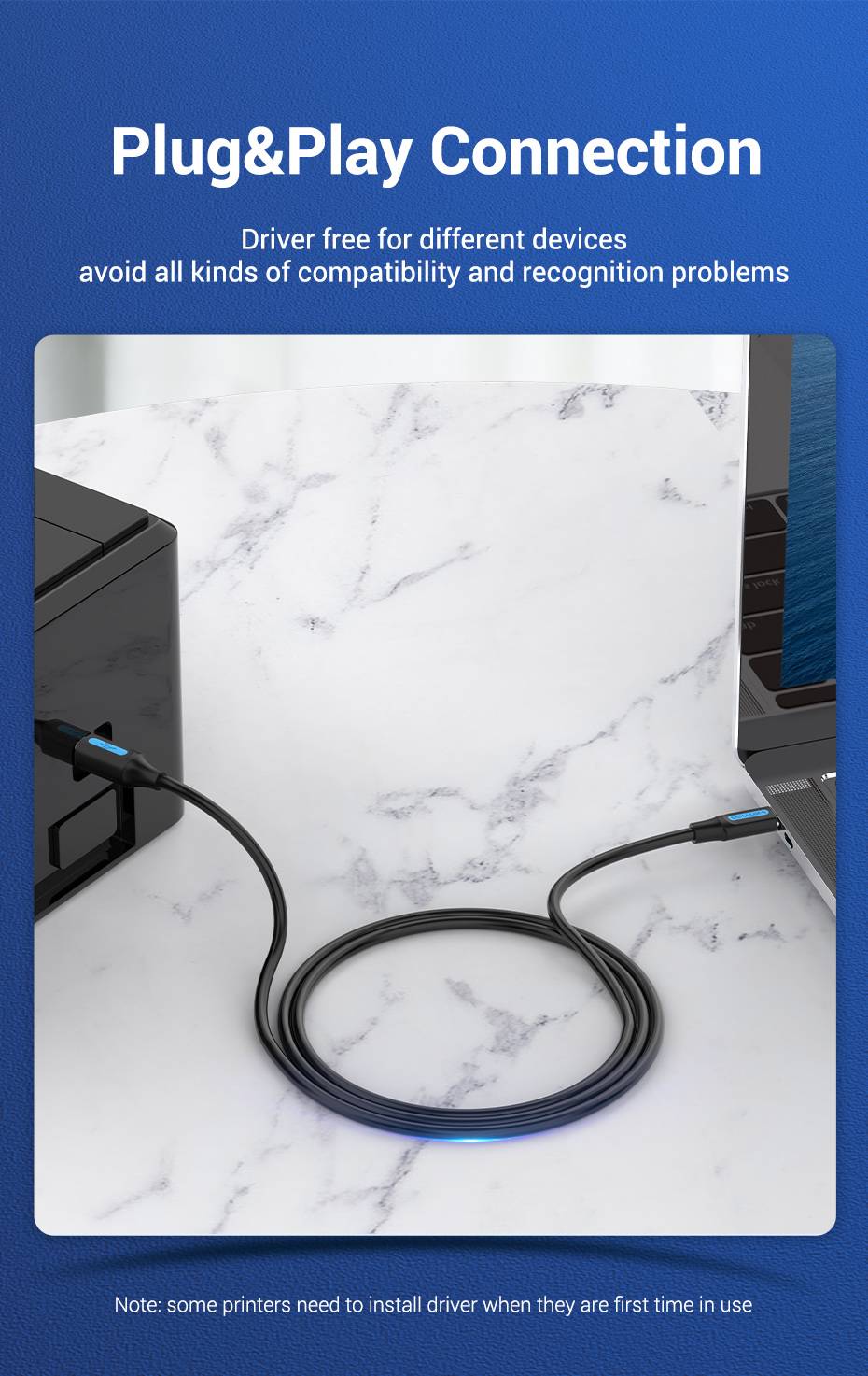 - Plug & Play Convenience: Enjoy the simplicity of setup with this cable's driver-free plug-and-play design, which helps you avoid potential compatibility issues. Please note that while most devices will connect effortlessly, some printers may require a one-time driver installation.