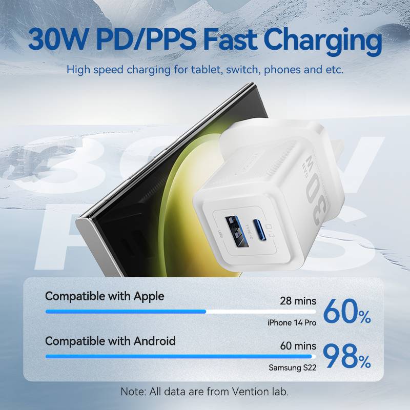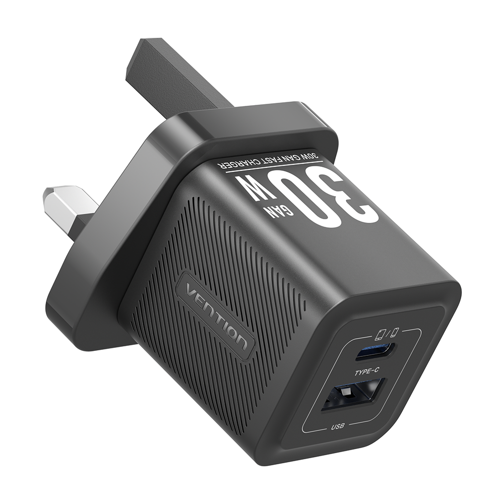 Elevate your power solutions with the Vention 30W GaN Wall Charger, a high-performance charging hub designed for the modern professional. Utilizing cutting-edge Gallium Nitride (GaN) technology, this charger delivers substantial power in a remarkably compact form factor, significantly reducing heat generation while maximizing efficiency. Featuring a dual-port configuration (USB-C and USB-A), it allows your customers to fast-charge everything from the latest iPhones and Android devices to tablets and smaller laptops simultaneously. Its sleek, fire-retardant finish and specialized UK pin design make it an essential premium accessory for the UK and regional markets.