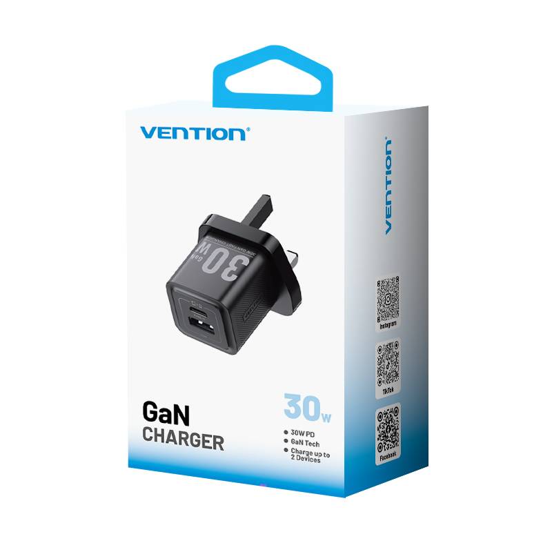 Vention MA Charger Wall GaN 30w 1xA 1xC UK Black FEQB0-UK