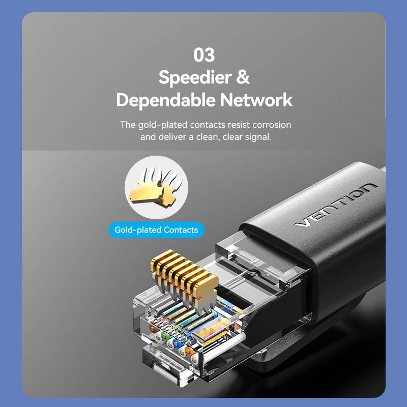 - Contacts: Gold-plated pins within the RJ45 connectors to prevent corrosion and ensure a high-conductivity mating surface over time.
