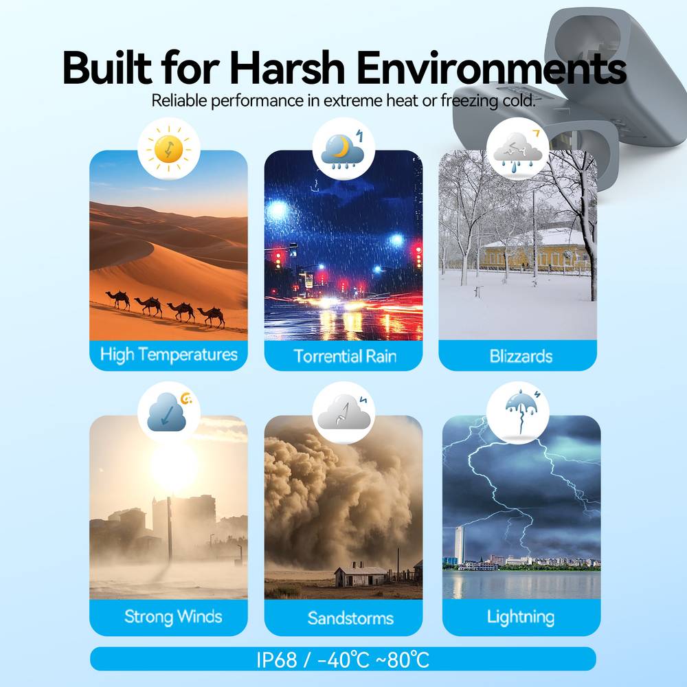 - IP68 Waterproof & Dustproof: Designed to withstand total immersion and extreme weather, ensuring uninterrupted internet service in rain, snow, or high-humidity environments.