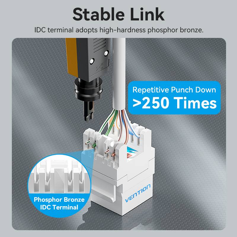 • Universal Compatibility: Standardized keystone footprint ensures a perfect fit into all Vention and third-party networking hardware.