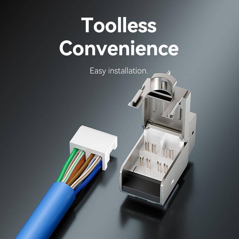 The Vention Cat7 UTP Toolless Keystone Jack represents the pinnacle of installation efficiency and high-bandwidth networking. Designed for cutting-edge environments, this jack allows for a complete termination without the need for a punch-down tool, significantly reducing labor time and the risk of installation errors. Despite the high-frequency requirements of Cat7, this unshielded (UTP) version offers a streamlined profile and simplified cable management. Its robust, tool-free locking mechanism ensures a secure, high-pressure contact for 10-Gigabit performance, making it the premier choice for modern data centers and high-end residential smart homes.