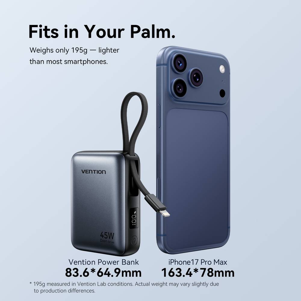 - 45W PD Fast Charging: Unlike standard 22.5W power banks, the 45W output is powerful enough to provide a "fast charge" for an iPhone 15/16/17 series, Samsung S-series, and even a MacBook Air or iPad Pro.