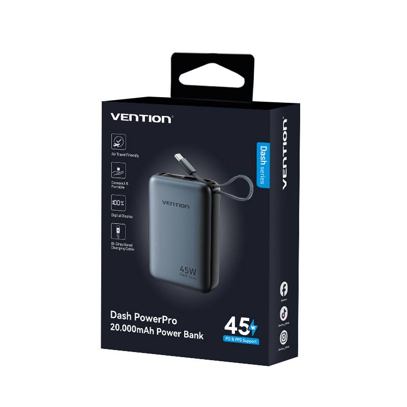 Vention Powerbank 20000mAh 45W 2xUSBC 1xUSBA + Built-in USBC Cable FHGH0-TY