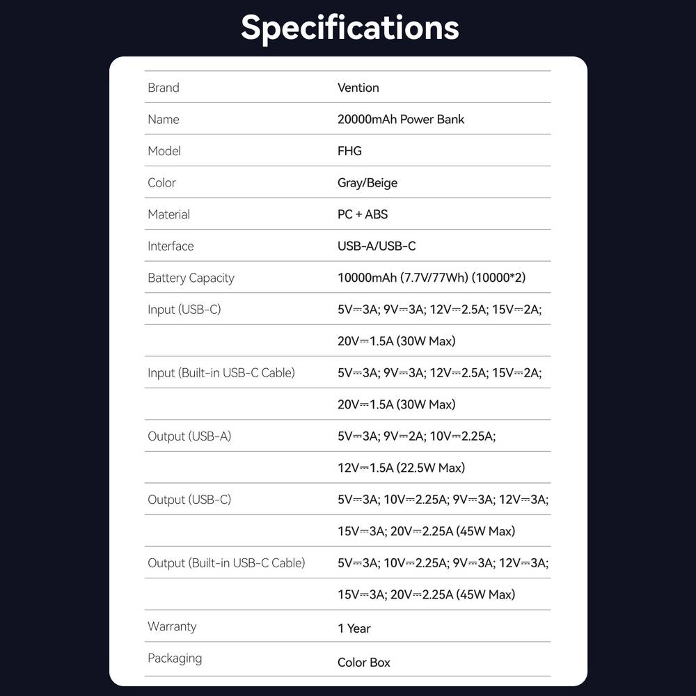It looks like you’re eyeing a heavy hitter in the portable power world. The Vention FHGH0-TY is a high-capacity power bank designed for users who need to charge more than just a phone—it’s beefy enough to handle tablets and even some laptops.