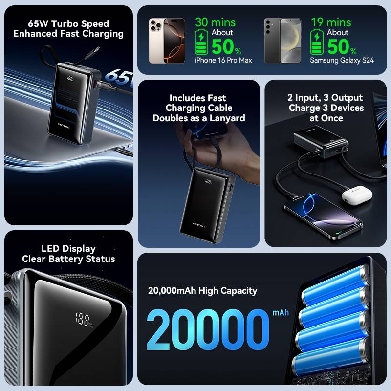 It looks like you’re eyeing a powerhouse of a portable charger. The Vention 20000mAh 65W (FKDM0) is a standout because it hits that "sweet spot" of high capacity and high speed, making it capable of charging not just phones, but also laptops like a MacBook Air or a Dell XPS.