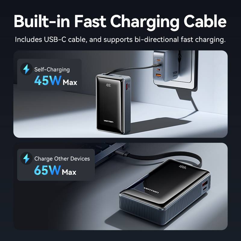 Vention Powerbank 20000mAh 65W+Built-in USBC FKDM0