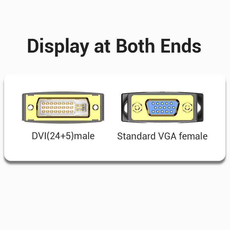 Compatible with a variety of devices, the Vention DVI Male to VGA Female Adapter supports bi-directional conversion. It is ideal for use in home and office environments to connect older VGA monitors or projectors to newer DVI-equipped devices, offering a broad range of applications.