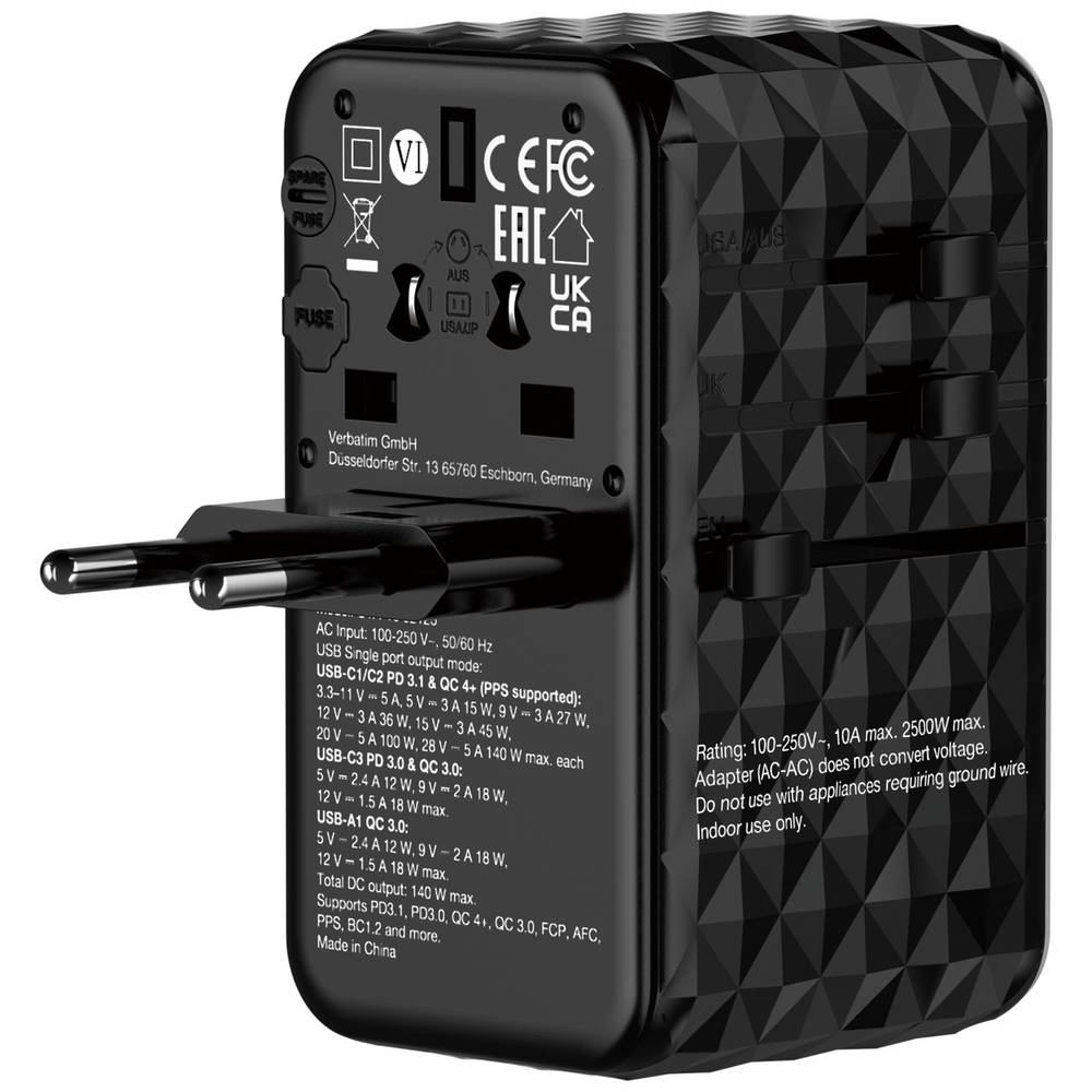 Verbatim Charger Travel Adapter World to World GAN III 170W 2xC 2xA UTA-10