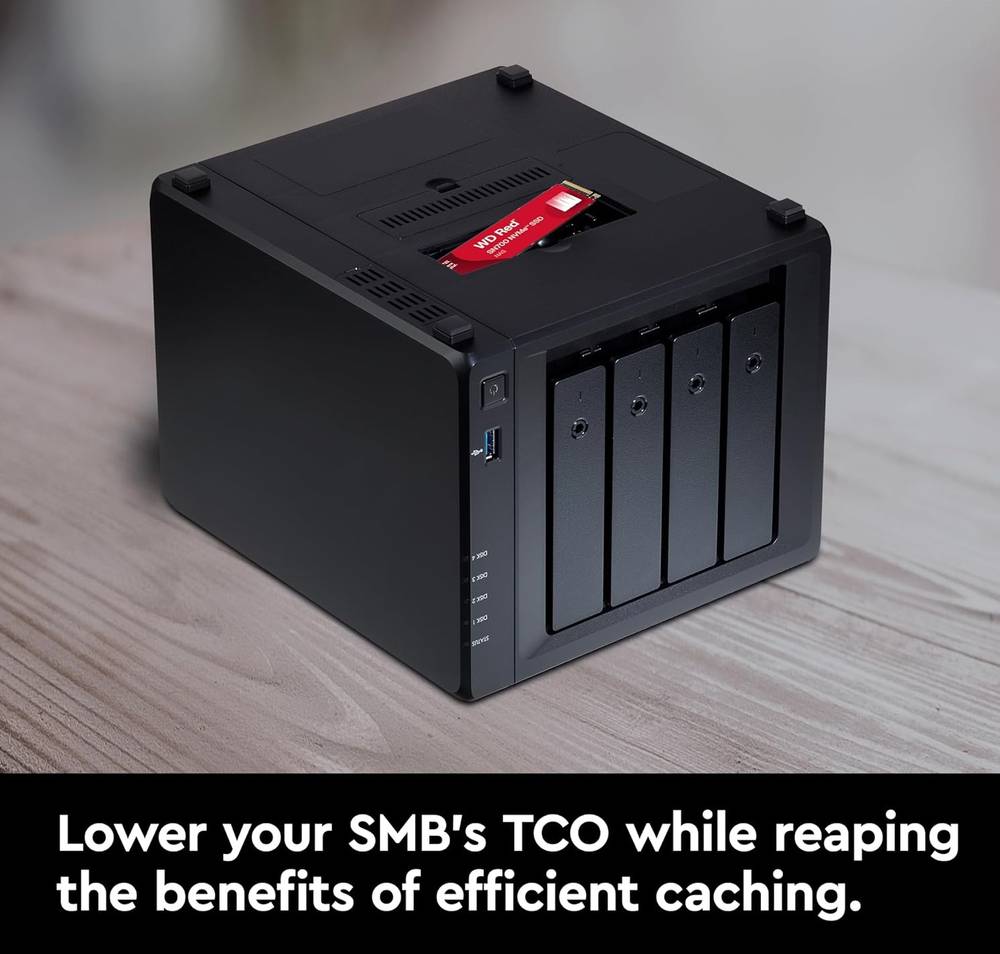 Tackle extreme workloads in high-intensity NAS environments with the fast-caching WD Red SN700 NVMe SSD. The drive’s robust system responsiveness and exceptional I/O performance are perfect for multi-user, multitasking applications, letting you tame your SMB’s toughest projects from virtualization to collaborative editing to intensive database storage with efficient caching —all while helping to lower your TCO.